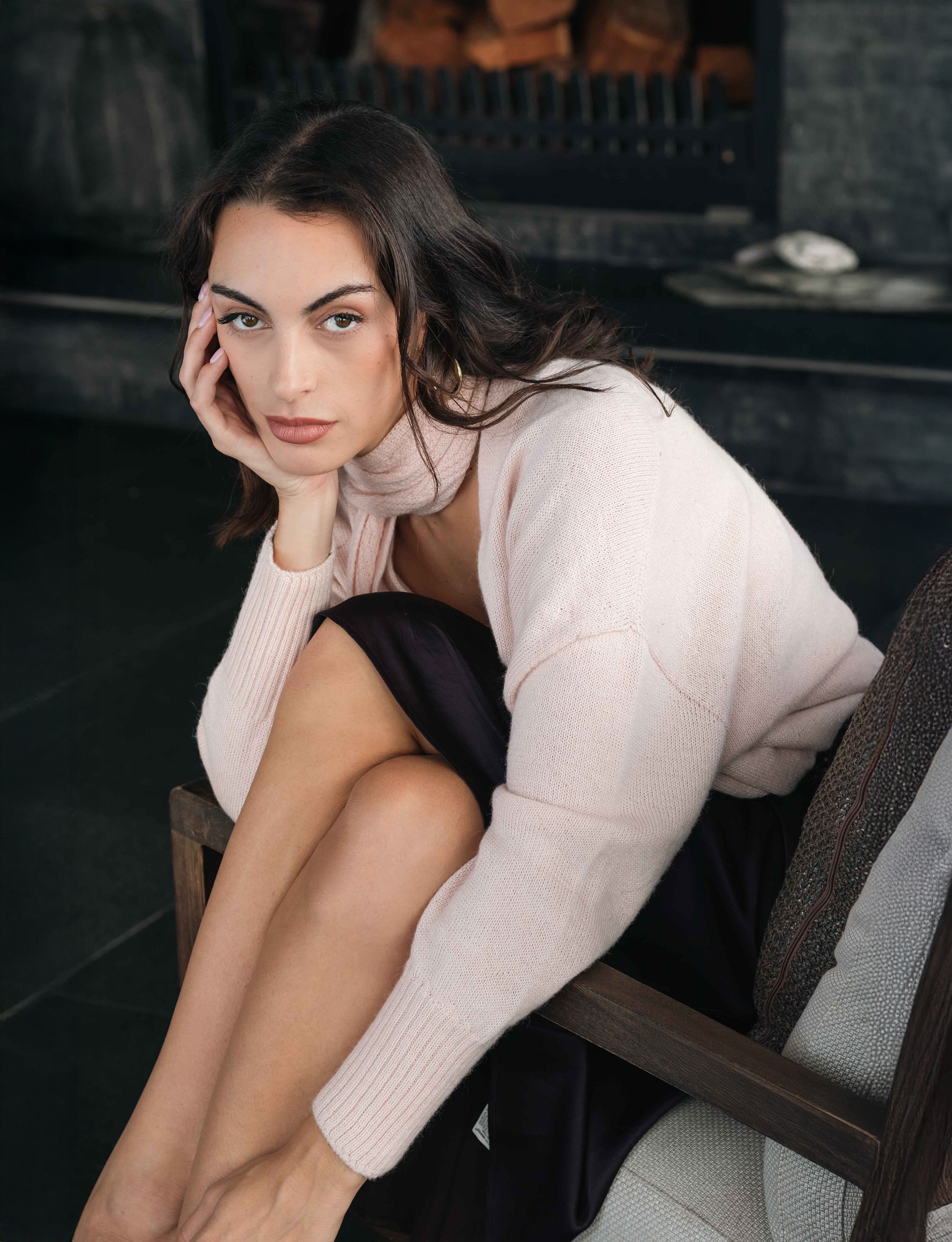 65% merino wool, 25% possum down, and 10% mulberry silk for a featherlight, breathable knit with exceptional warmth and elegance.