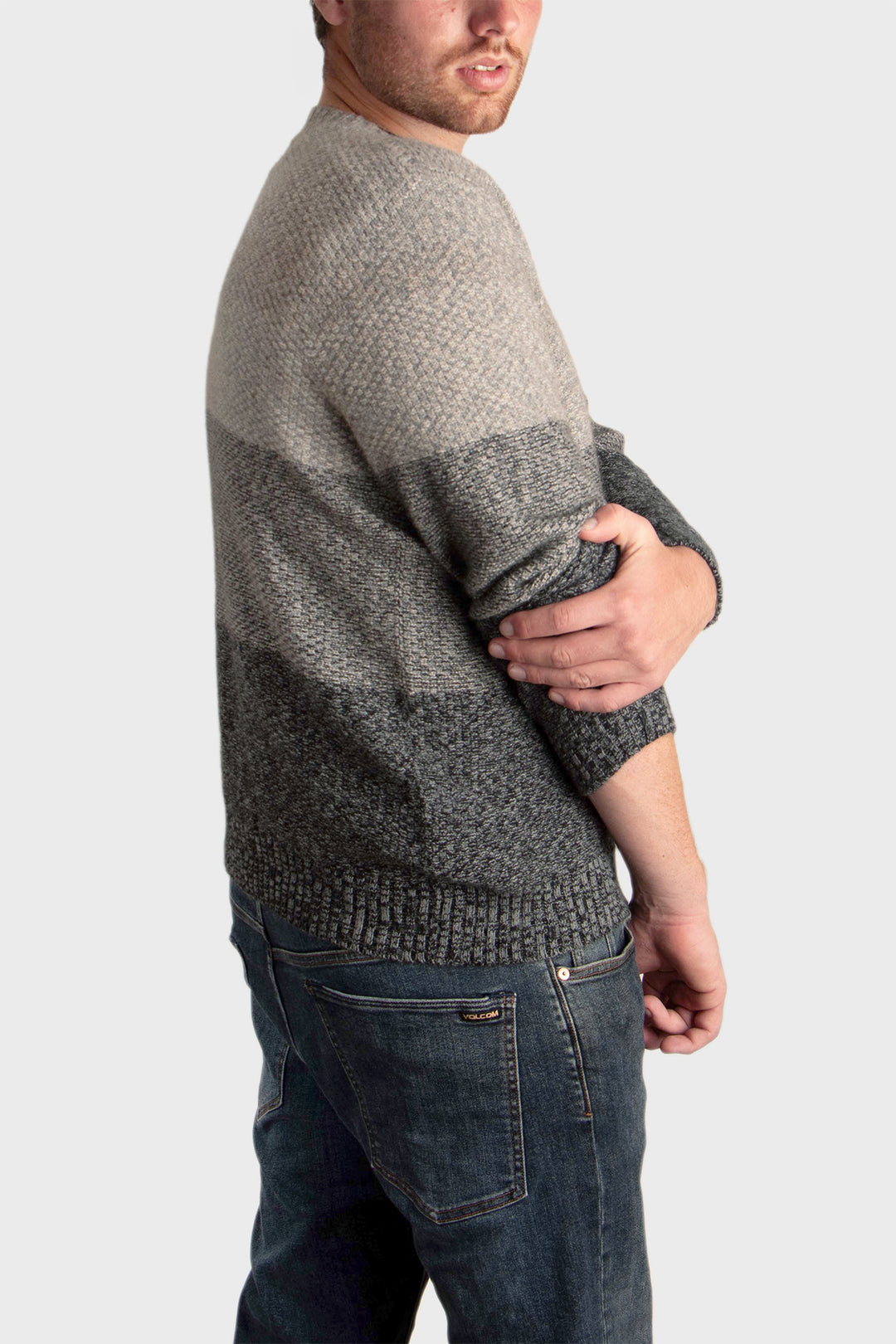 Experience this jumper's luxurious weight and tactile appeal, designed to keep you cosy and comfortable throughout the seasons. Elevate your wardrobe with our Men's Nimbus Ombre Moss Stitch Jumper—a true embodiment of sustainable luxury and timeless style.