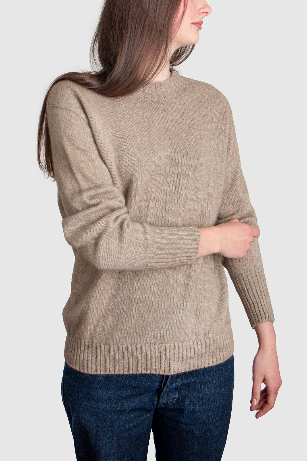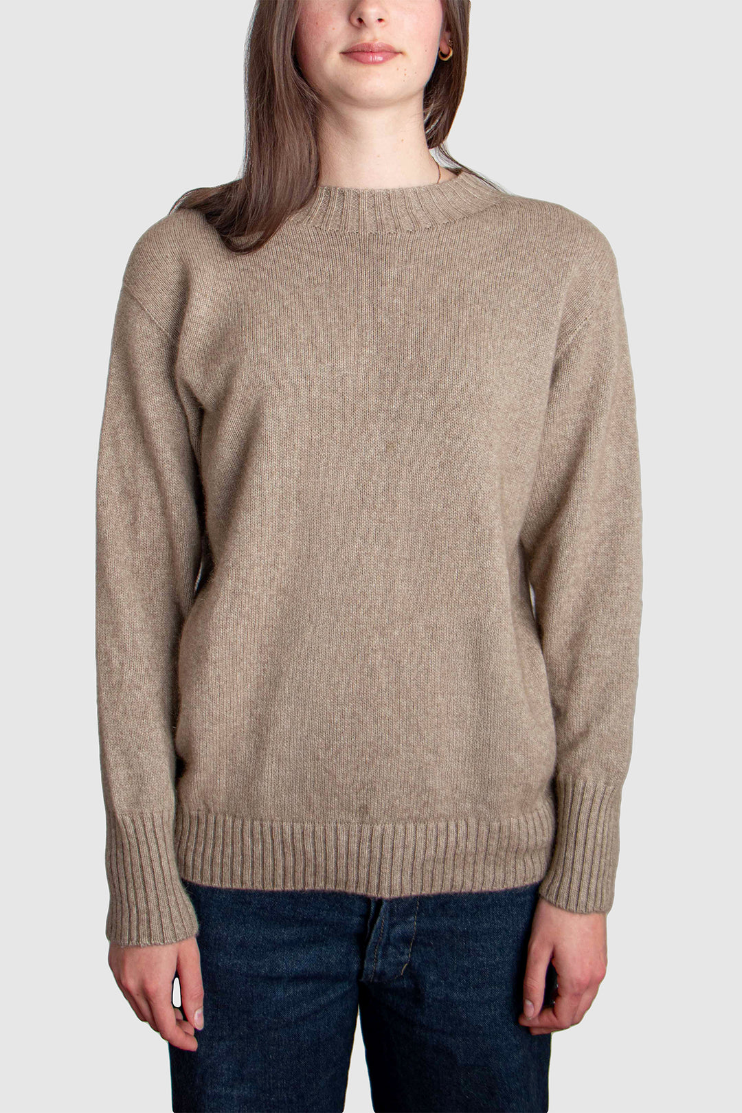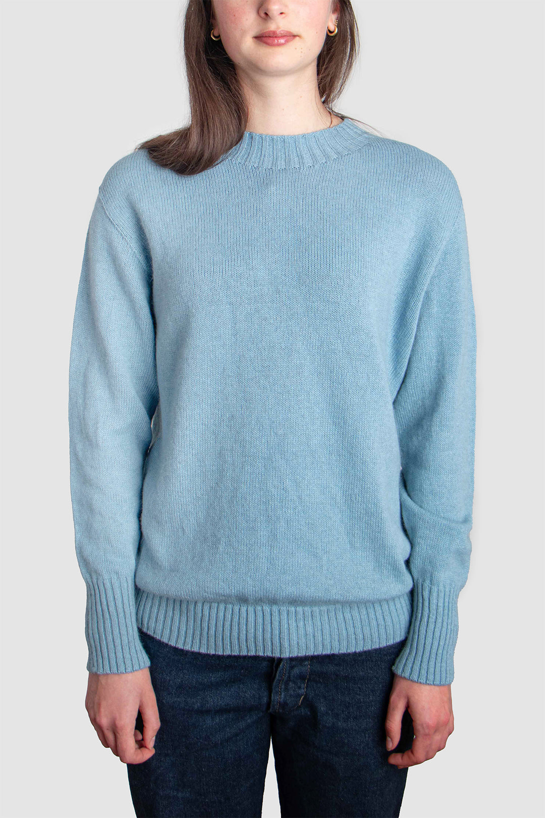 With its relaxed silhouette and classic crew neckline, this jumper offers both comfort and refinement. Delicate 2x2 rib detailing at the collar and hem anchors the shape, while extended ribbed cuffs elongate the sleeves with a considered touch of elegance.