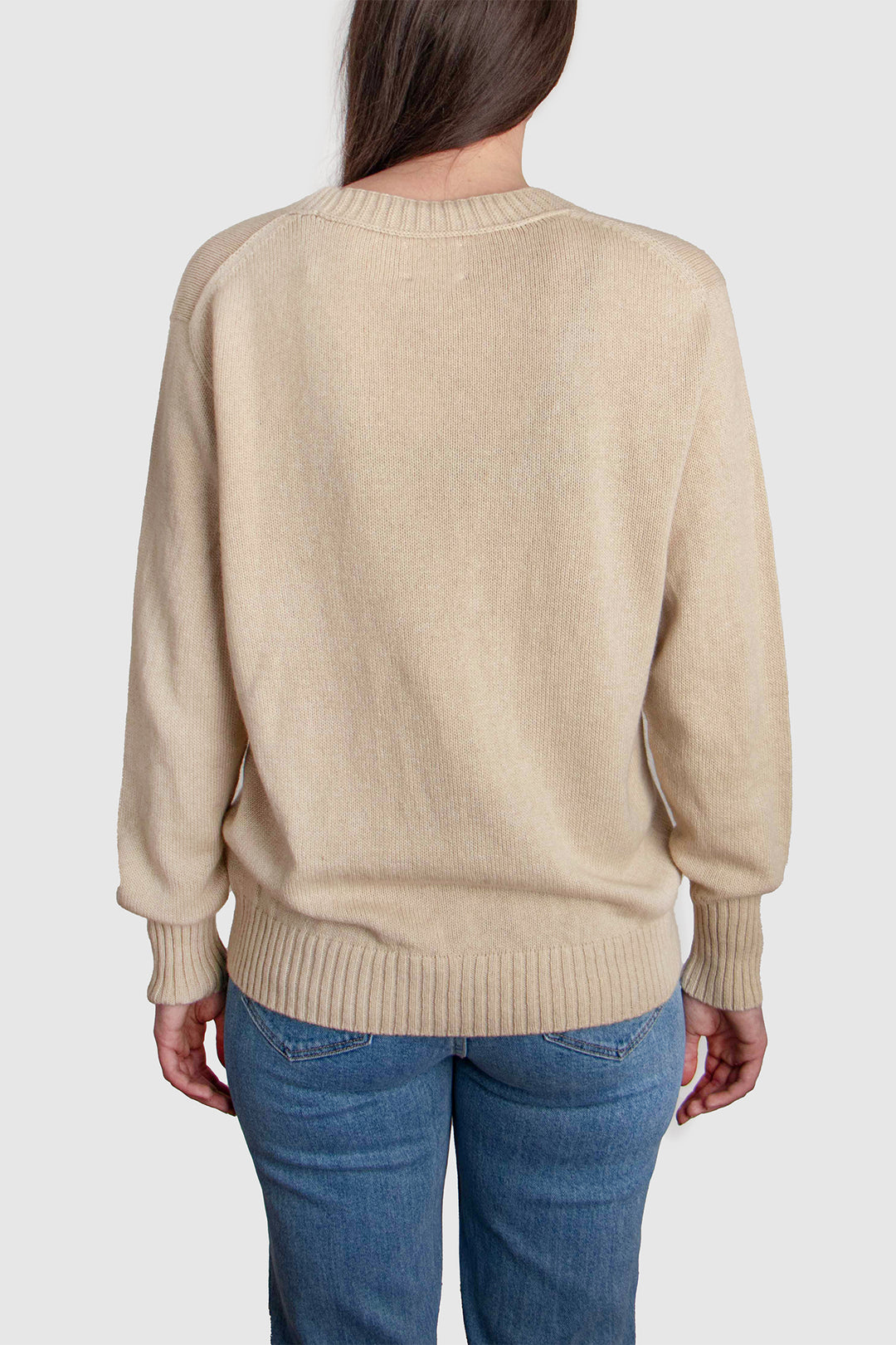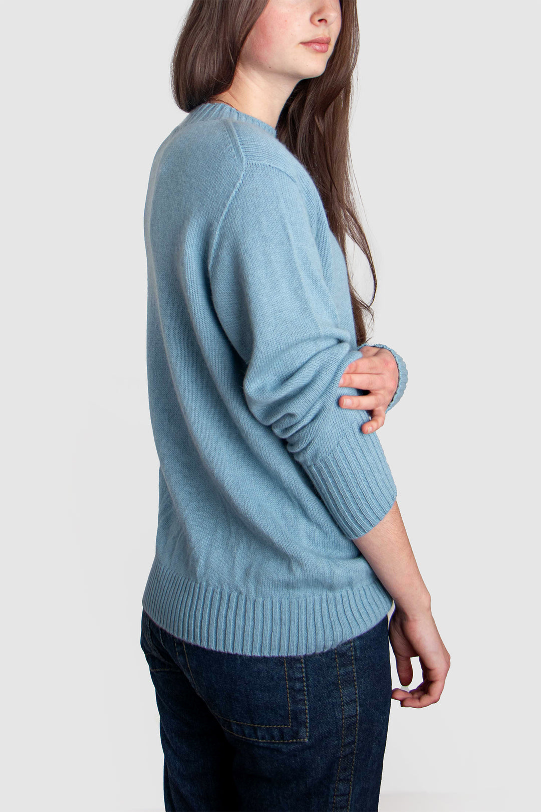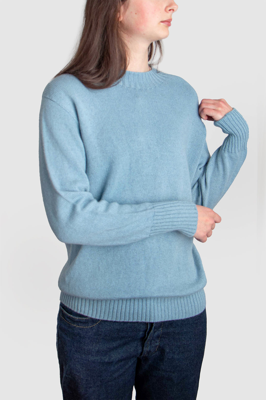 With its relaxed silhouette and classic crew neckline, this jumper offers both comfort and refinement. Delicate 2x2 rib detailing at the collar and hem anchors the shape, while extended ribbed cuffs elongate the sleeves with a considered touch of elegance.