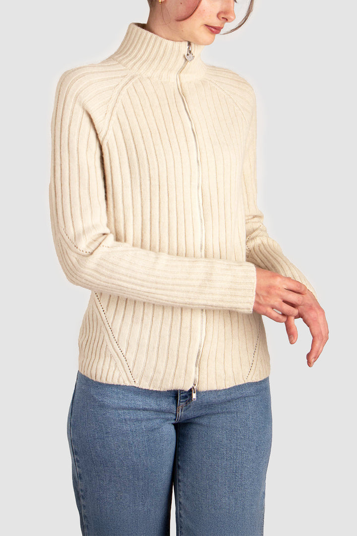 The diagonal rib detailing adds subtle structure and fluidity, gently shaping the silhouette while enhancing the jacket’s textural richness. A two-way zip offers styling versatility, while our signature stingray pull lends a refined, functional finish.
