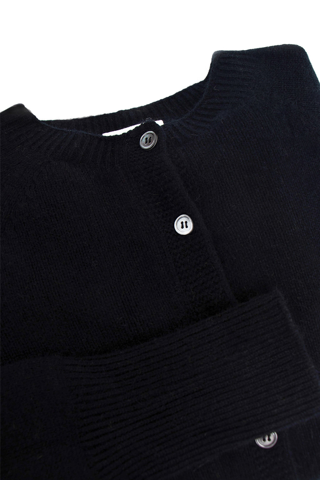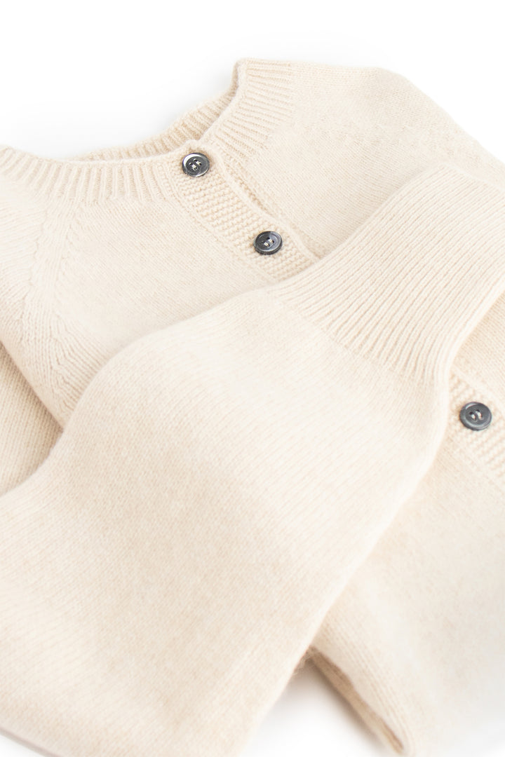 ∙ Classic crew neck with smoke-coloured button fastening