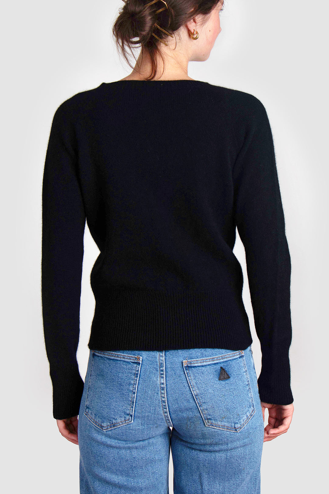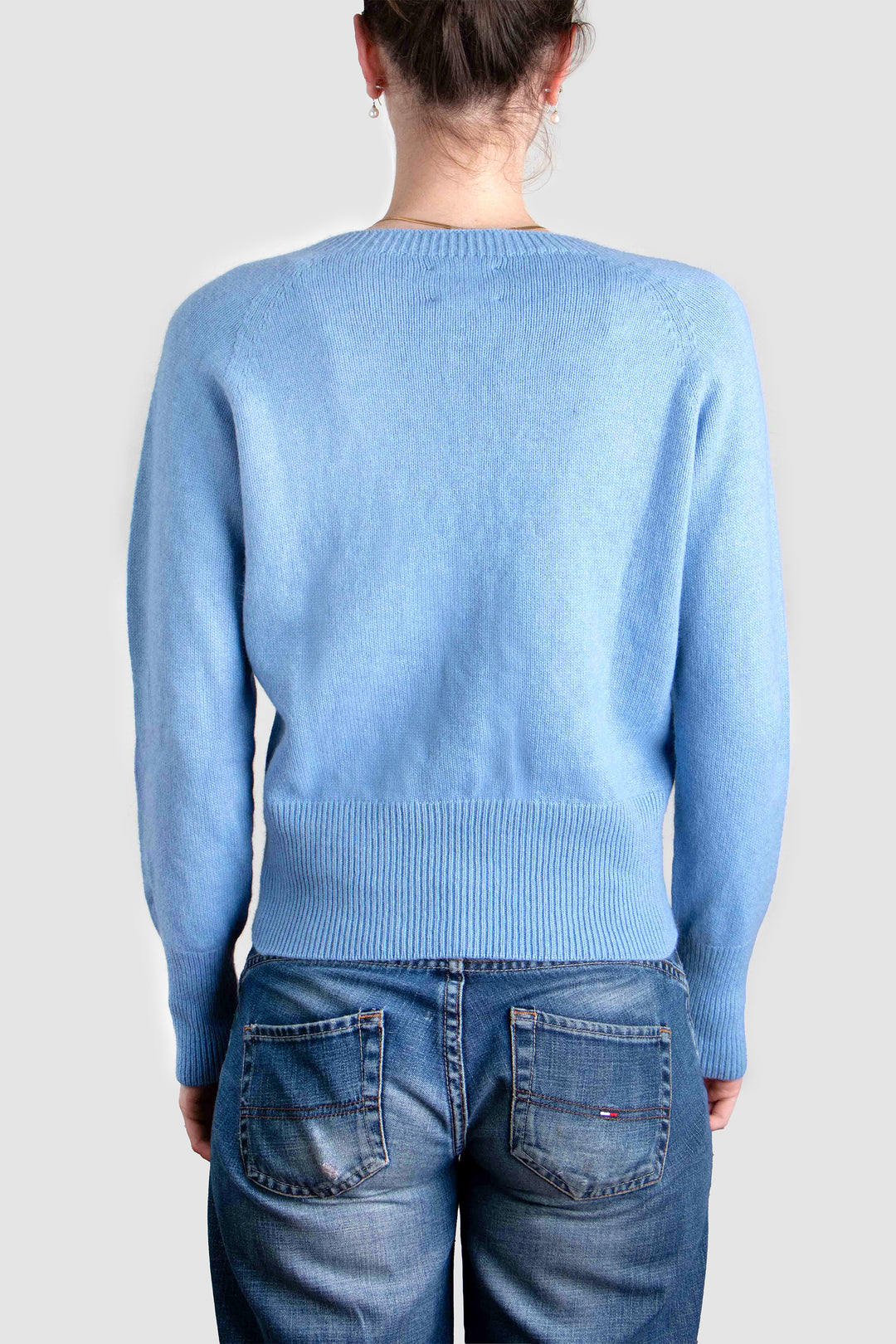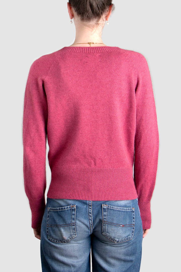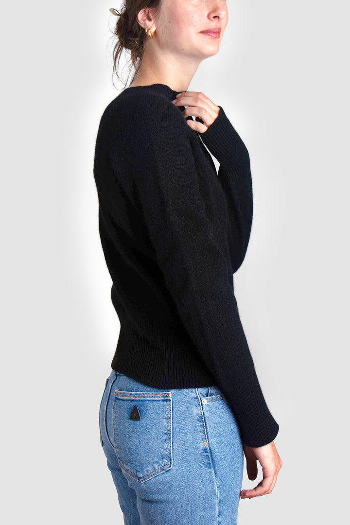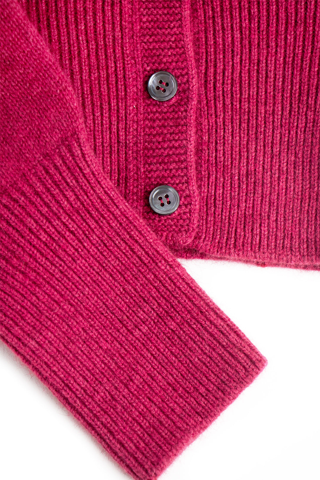 Delicate smoke-hued buttons line the front, complementing the classic crew neckline and adding a hint of understated charm. Whether worn open over a silk slip dress or buttoned with tailored trousers, this cardigan anchors the wardrobe with elegance and ease.