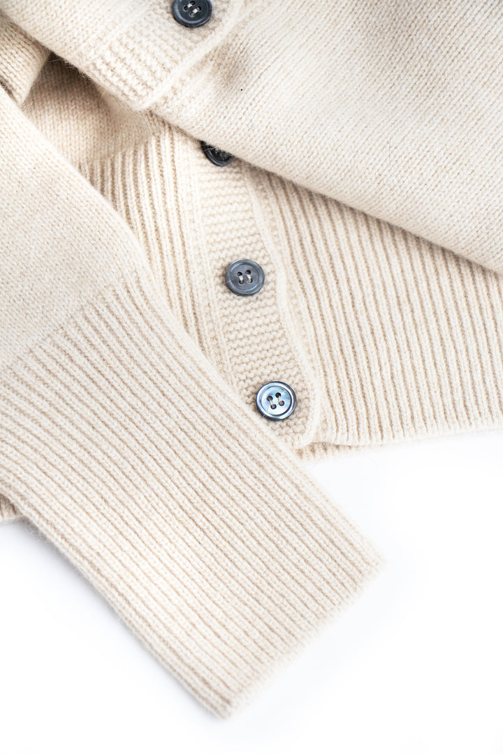 A timeless staple reimagined with artisanal finesse, the Nimbus Essential Cardigan is a study in soft structure and quiet sophistication. Slim-fitting and subtly cropped, it offers a refined silhouette designed to transition effortlessly from day to evening.