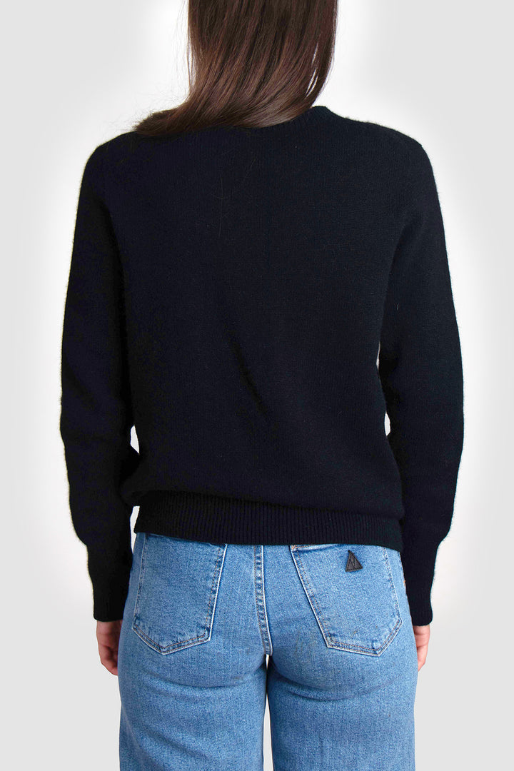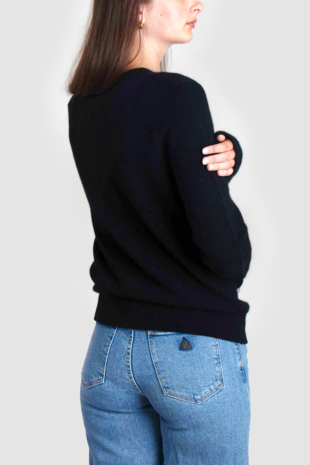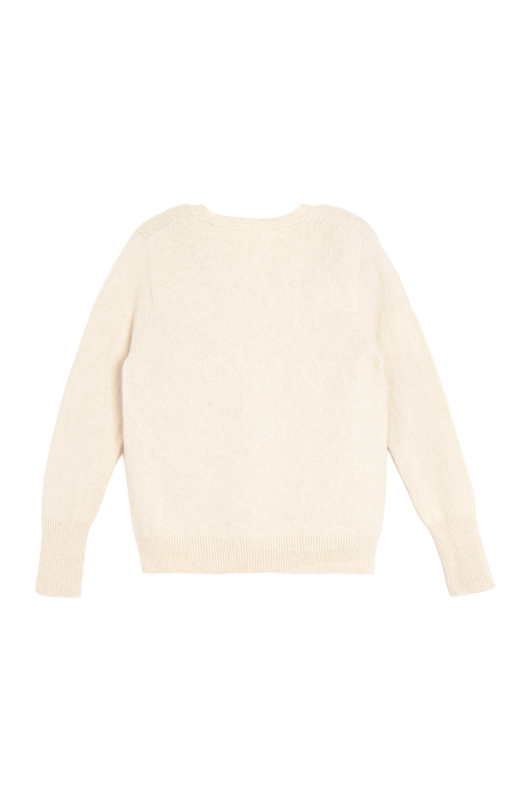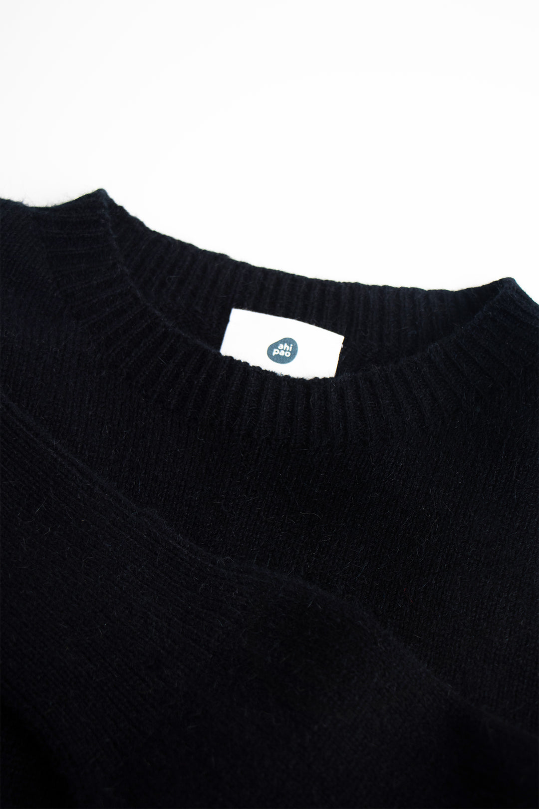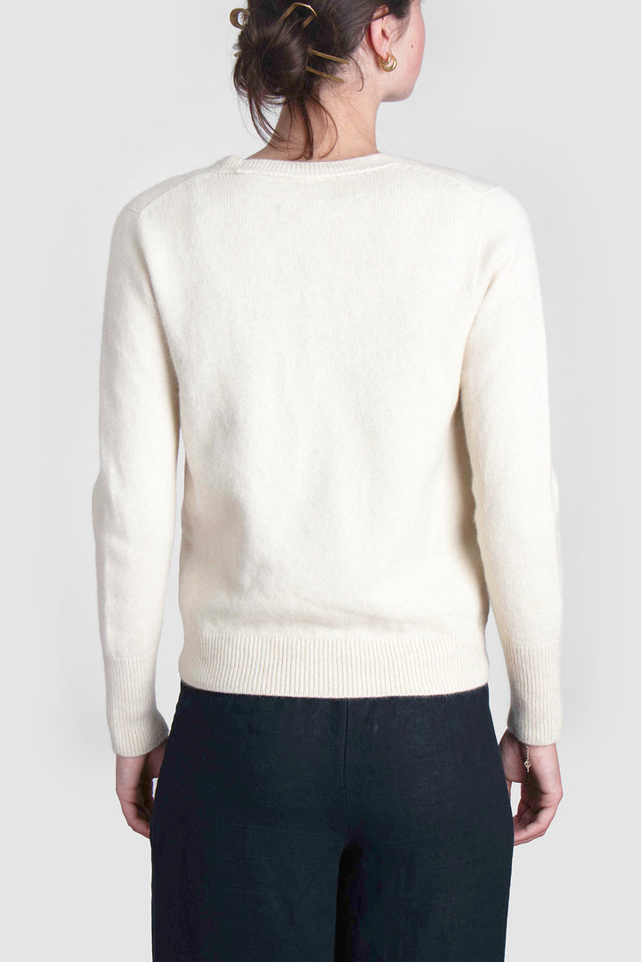 The silhouette is gently contoured, with a classic crew neckline and subtle detailing: 2x2 rib trims at the collar, cuffs, and hem, and extended sleeves for a touch of sophistication. Understated and versatile, it transitions effortlessly from relaxed moments to polished ensembles.