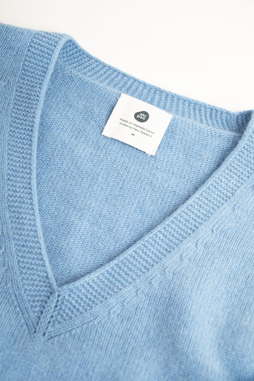 Knitted in our signature Nimbus blend—65% merino wool, 25% possum down, 10% mulberry silk—this medium-weight piece delivers breathable warmth with a silky finish. Naturally pill-resistant and resilient, it’s made to maintain its beauty through time and wear.