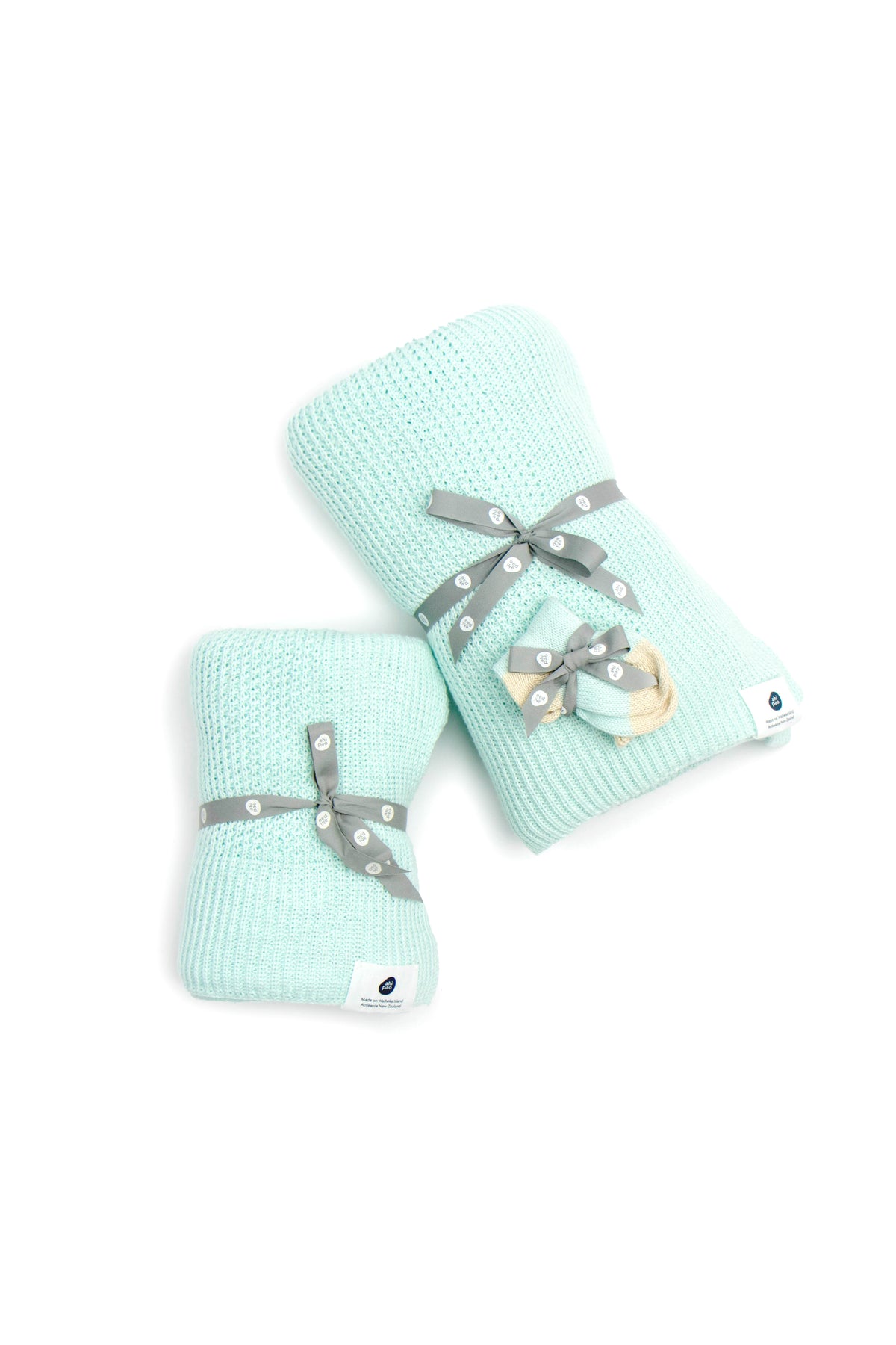 Knitted in a delicate waffle stitch from 100% certified organic cotton, it’s gentle on delicate skin and breathable enough for year-round snuggles.