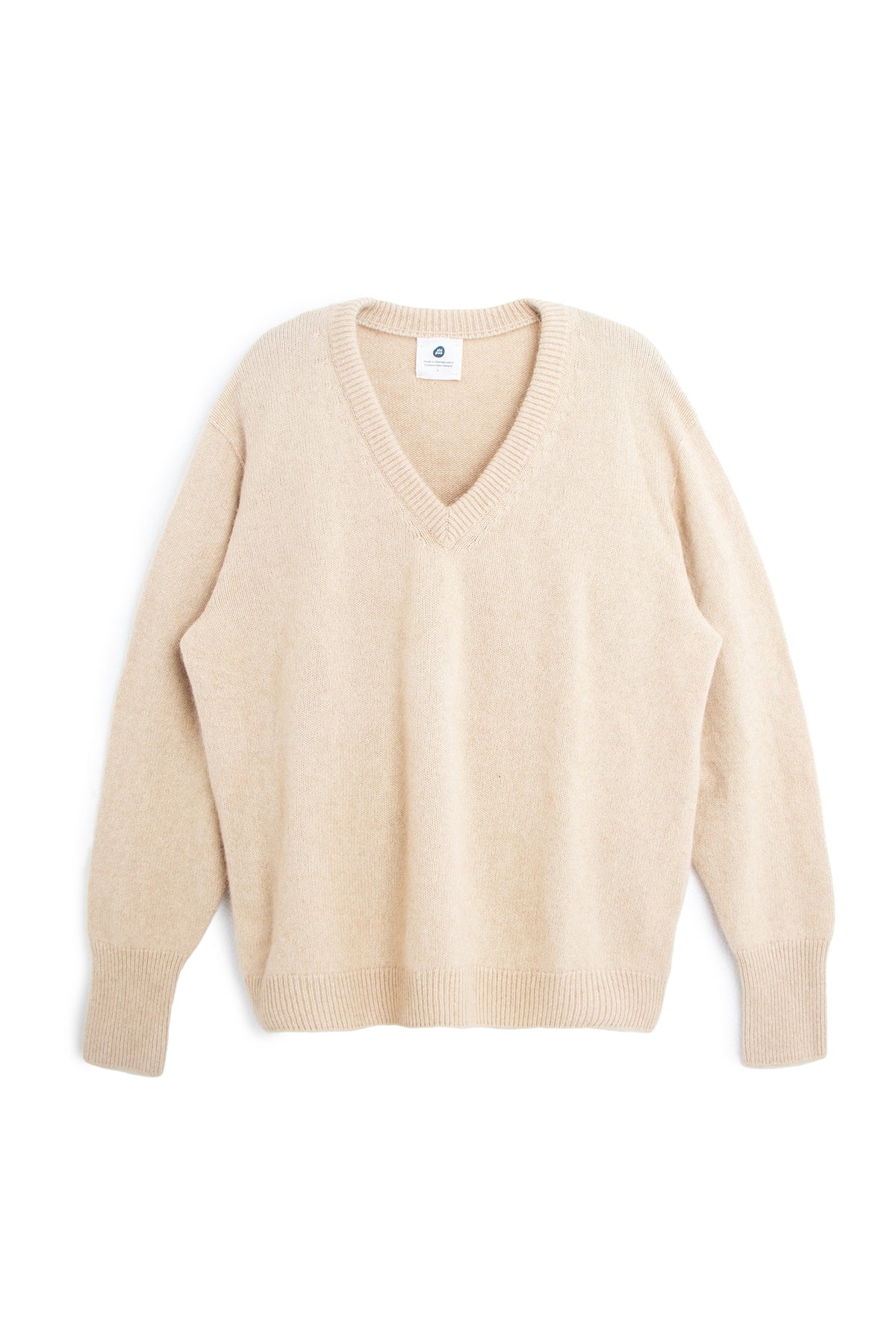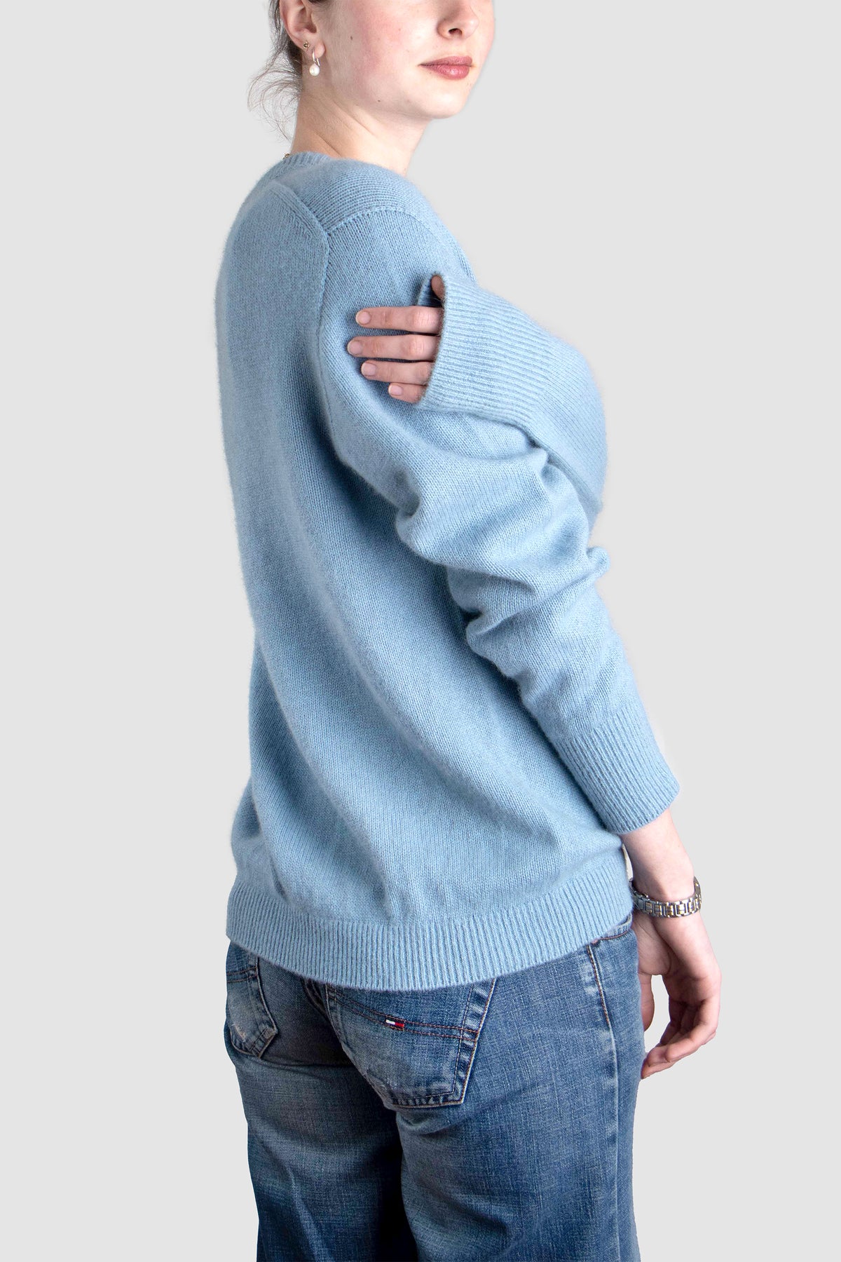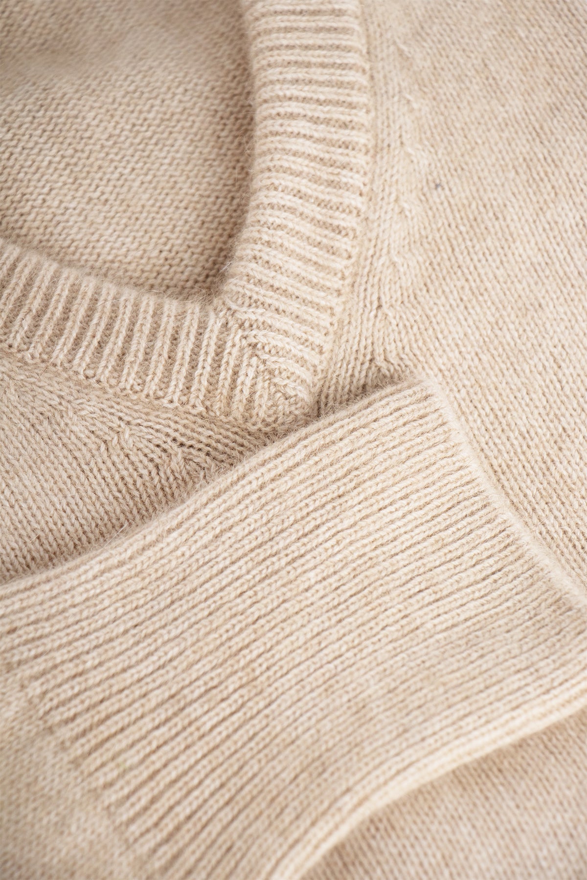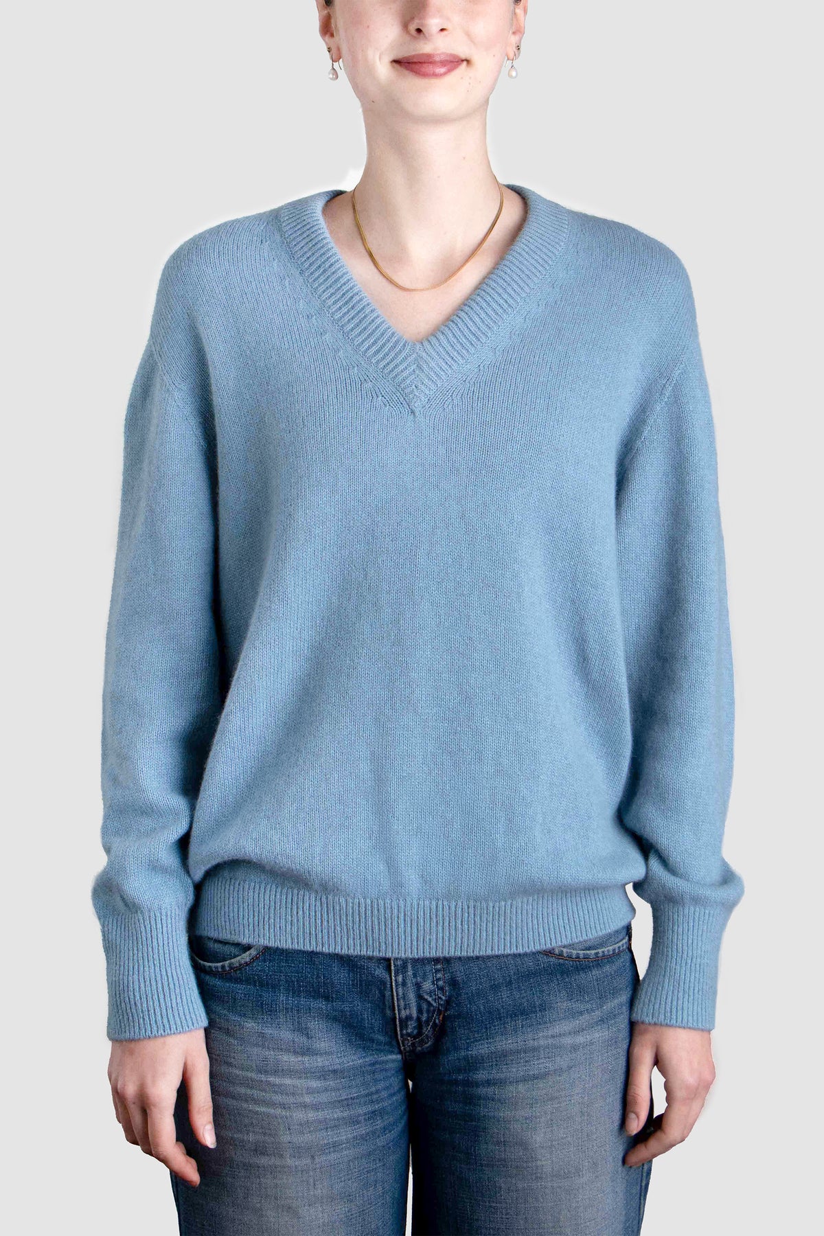 Designed with a relaxed fit and a flattering low V-neck, this sweater is all about refined simplicity. The linked-on neckline creates a smooth, seamless finish, while the extended 1x1 rib cuffs add a feminine touch with a hint of structure.