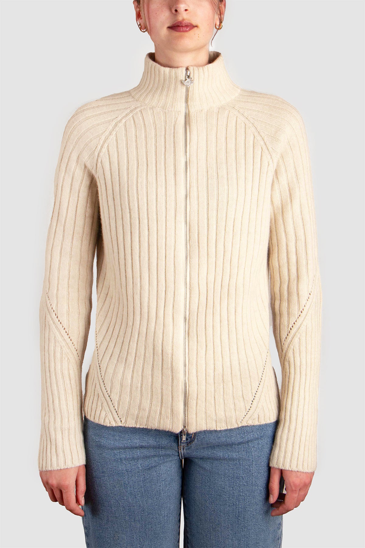 The diagonal rib detailing adds subtle structure and fluidity, gently shaping the silhouette while enhancing the jacket’s textural richness. A two-way zip offers styling versatility, while our signature stingray pull lends a refined, functional finish.